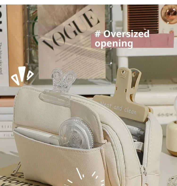 Alliez style et fonctionnalité avec cette trousse en toile à grande ouverture. Que ce soit pour les fournitures scolaires, le maquillage ou les accessoires de voyage, elle est à la fois élégante, spacieuse et facile à transporter. Sa matière en toile résistante et son design minimaliste en font un must-have pour les étudiantes organisées.