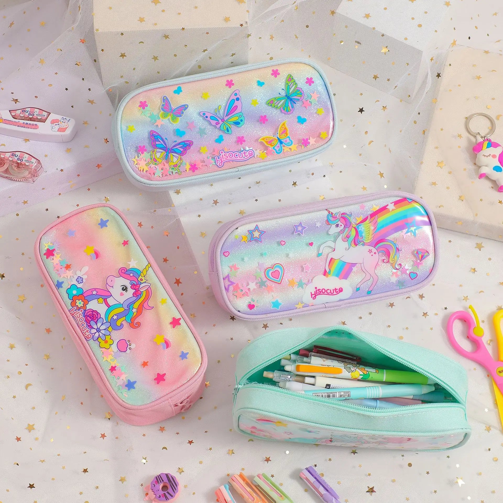 Trousse Licorne Kawaii – Grande Capacité | Arc-en-ciel & Papillons | Cadeau Idéal pour Filles